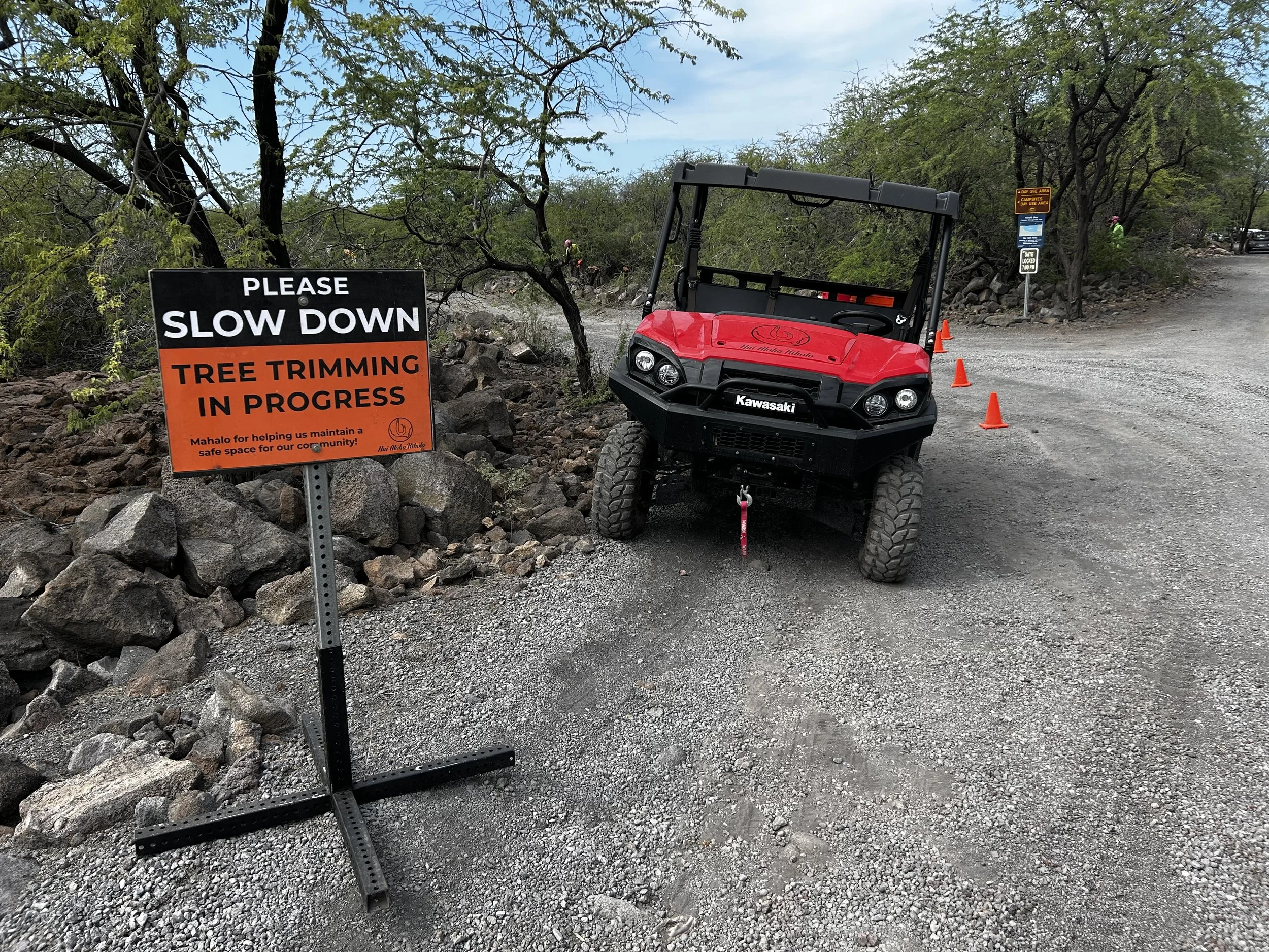 Vegetation management will occur along Luahinewai Road (from Kīholo Bay Access Road toward Hale Hoa ʻĀina) and Kīholo Bay Access Road (from the campsite turnoff to the coastline), covering approximately 0.5 miles of unpaved road. A map showing the impacted areas will be posted.